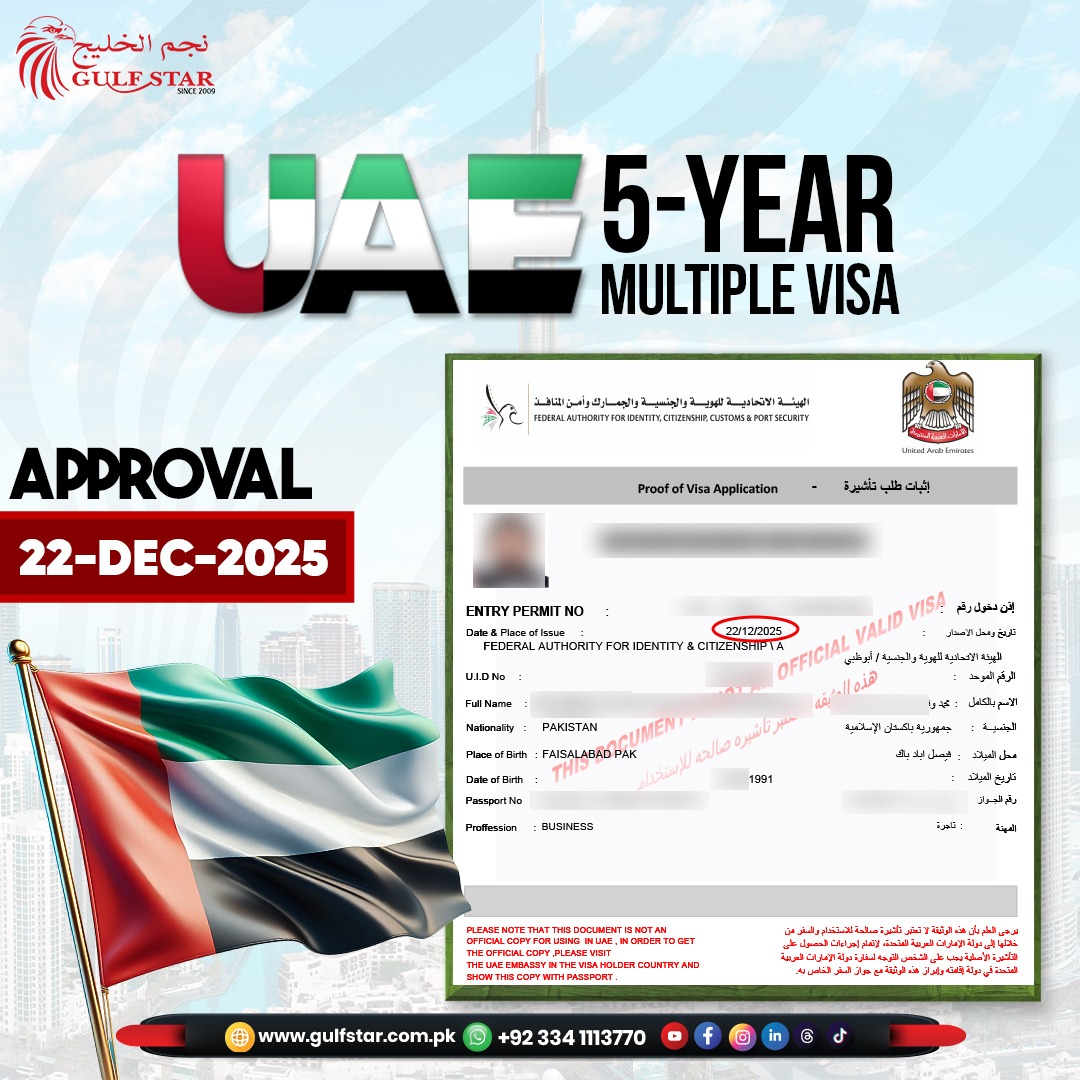 Take the next step, check your eligibility and apply for your UAE 5-Year Multiple Entry Visa with Gulf Star Services.